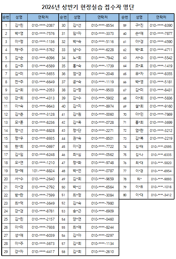 2026년 상반기 현장실습 접수자 명단