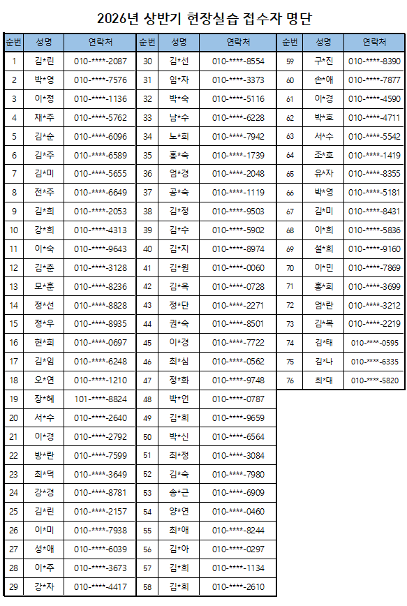 2024년 하반기 장애인활동지원사 현장실습자 명단 안내